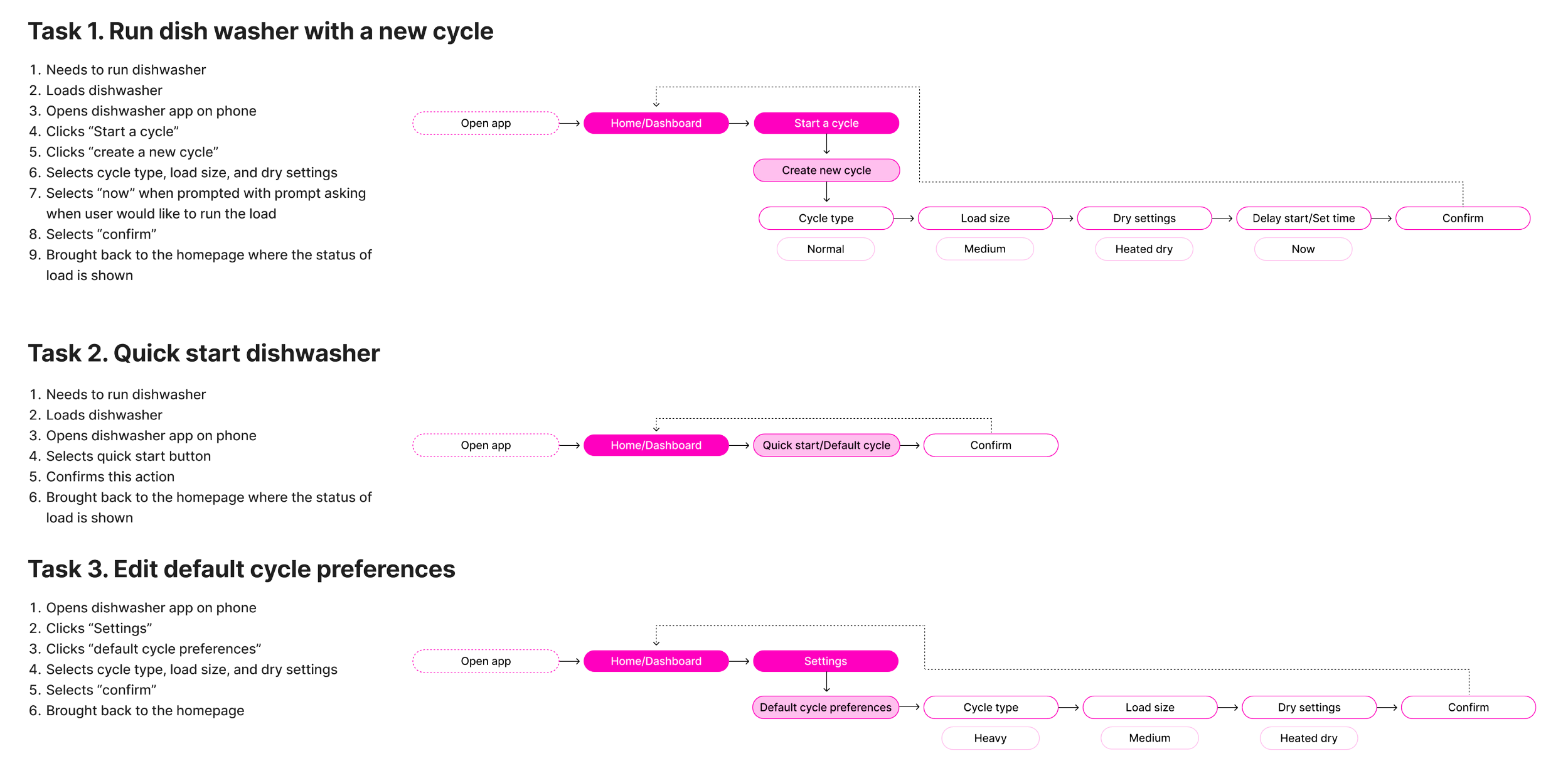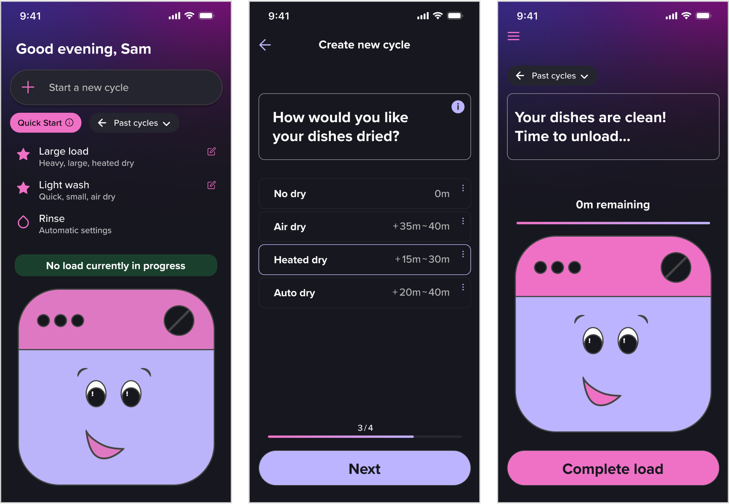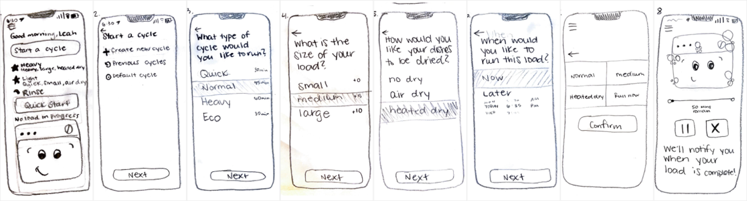 To gain insight on people’s experience using dishwashers, a group of classmates and I conducted interviews. From there I could decide how my app could improve specific aspects of using a dishwasher.